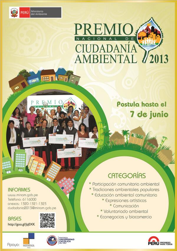 Además, el Premio Nacional de Ciudadanía Ambiental 2013 busca la construcción de una sociedad peruana sostenible, competitiva, inclusiva y con identidad.